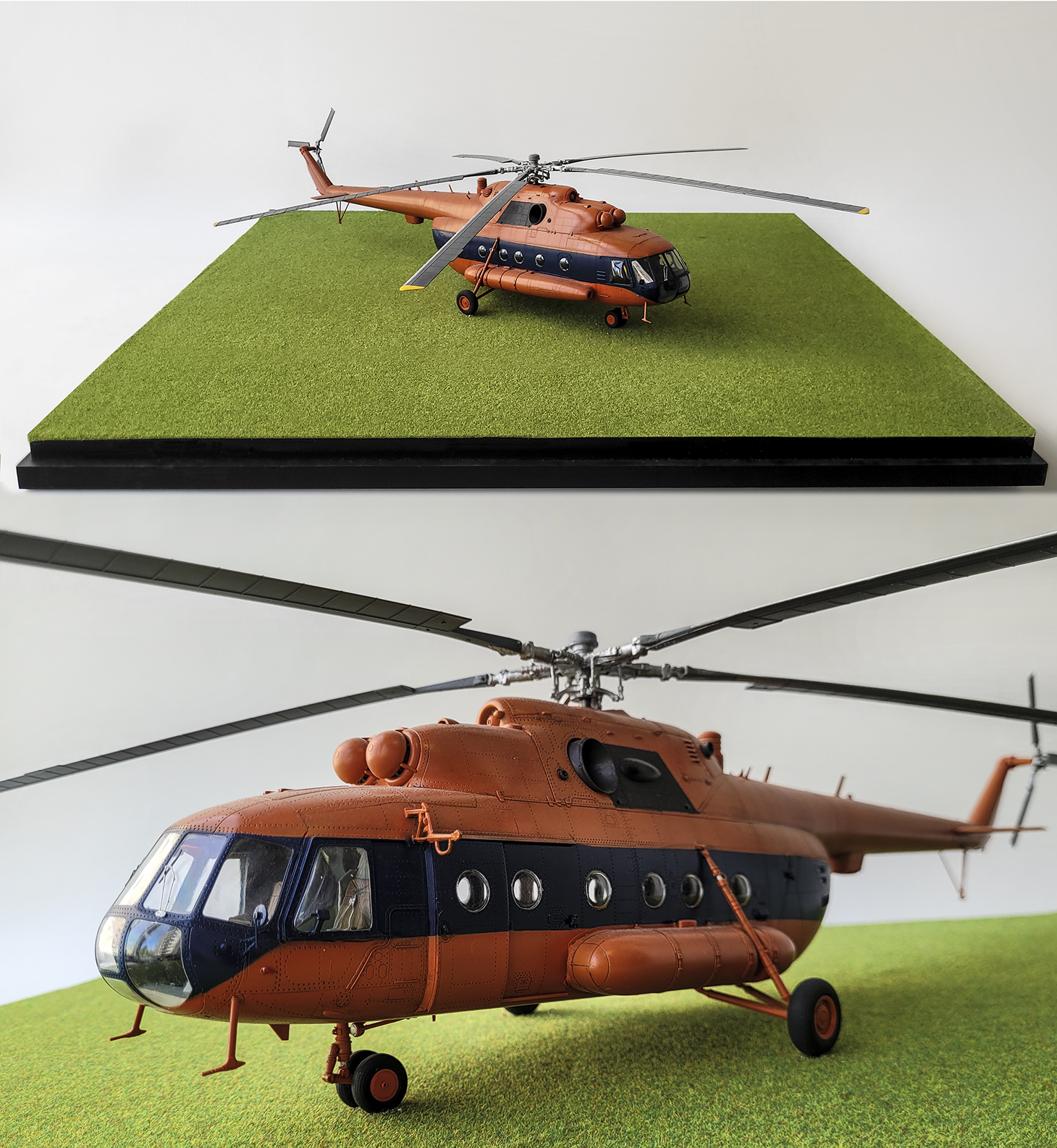 Модель вертолет Ми-2. Длина- 16 см. Диаметр винта - 20 см. Модель представлена в демонстрационном футляре из оргстекла.