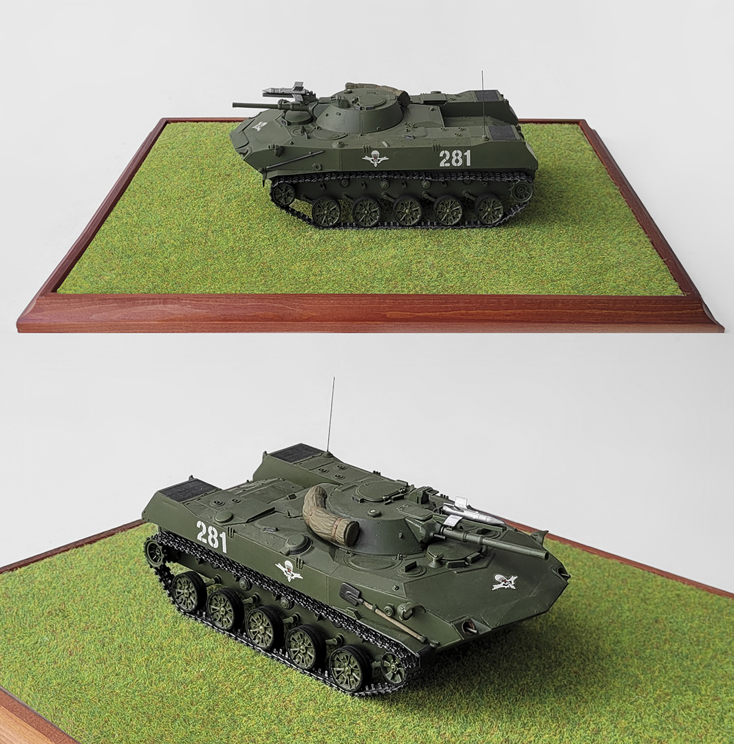Модель БМД-1. Длина макет БМД 1 - 16 см. Модель укомплектована футляром из оргстекла.
