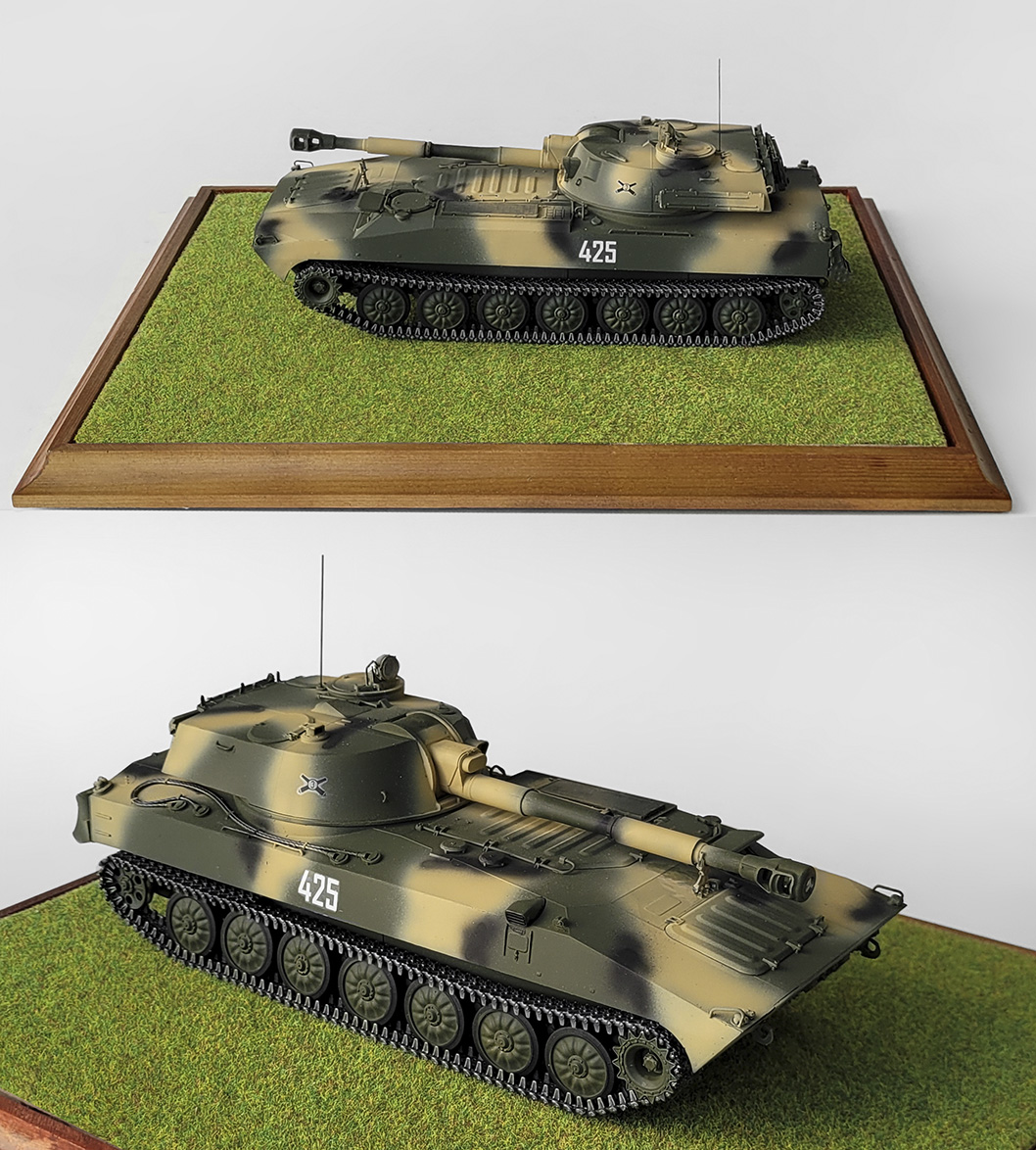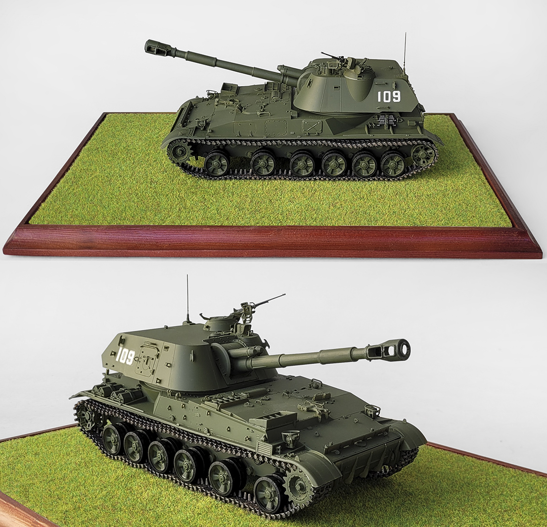 Модель САУ Гвоздика. Длина макет САУ Гвоздика - 21 см. Модель укомплектована футляром из оргстекла.