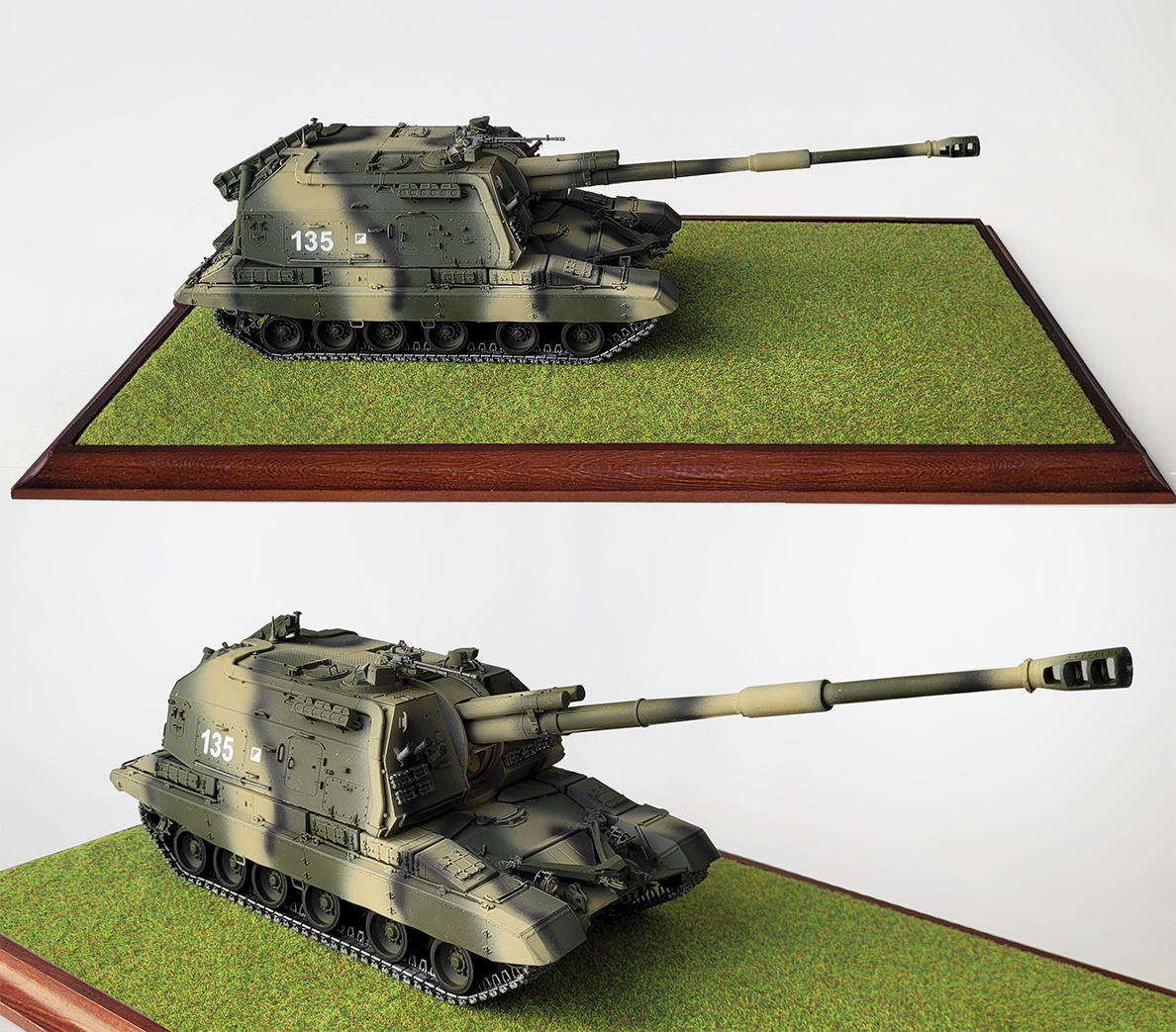 Модель САУ Мста. Длина макет САУ Мста-С - 34 см. Модель укомплектована футляром из оргстекла..