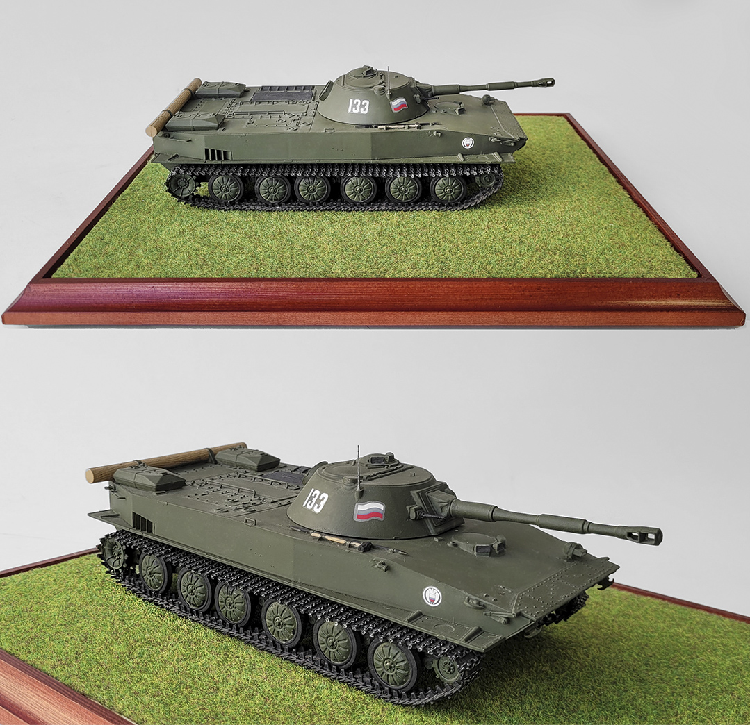 Модель танка ПТ 76. Длина макет танк ПТ76 - 22 см. Модель укомплектована футляром из оргстекла.