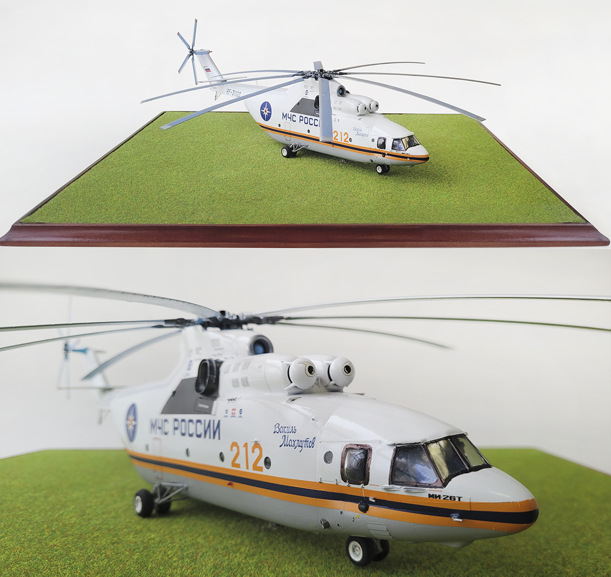 Модель вертолет Ми-26. Длина- 47 см. Диаметр винта -45 см. Модель представлена в демонстрационном футляре из оргстекла.